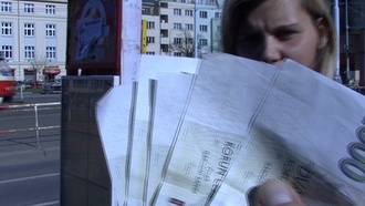 Začalo jaro, pěkně se oteplilo a to byl nejvyšší čas znovu po menší pauzičce vyrazit do ulic a zjistit na vlastní oči, jak se české holky začínají hezky odhalovat. Nemělo smysl chodit kolem horké kaše a tak jsem na kolemjdoucí ženy a slečny rovnou vyrukoval s nabídkou rychlých prachů za ukázku podprsenky nebo přímo prsou. Ovšem známost Rychlých prachů mezi českými holkami už je tak veliká, že bylo pořádně těžké nějakou přemluvit. Tři dny jsem trpělivě brázdil městem s kamerou a za tu dobu se mi podařily dva opravdu cenné úlovky. Tím nejvzácnějším se stala krásná dvacetiletá Ilona, s neuvěřitelnýma modrýma kočičíma očima. Ilona se ani netajila tím, že má moc ráda voňavé penízky a tak nebylo složité ukecat ji na něco více než jen kozy ven. Opíchal jsem ji hned vedle autobusové zastávky a na památku vystříkal svůj podpis přímo na ten její krásný obličej. Bylo to parádní přivítání jara. Také nechápete, co všechno jsou české holky schopné udělat kvůli penězům? Tak se podívejte na tuhle. Je to síla!