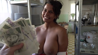 Tohle je splněnej sen všech chlapů na světě. Nebudete věřit, co se mi stalo v hospodě, kam chodím na obědy. Do kuchyně tam nastoupila nová pomocná kuchařka Veronika ze Slovenska, fantastická roštěnka s obrovskýma dudama! Lidi, něco takovýho jsem v životě neviděl. Kozy přímo od Boha! Když ta prsatá bohyně zjistila, kolik prachů si může rychle vydělat, úplně z toho zvlhla. Mazlil jsme se s těmi medicinbaly, cpal jí ocas až do krku a pak jsem to uviděl - megapoštěvák!!! Ta holka měla mezi nohama klitoris jako prst! Píchal jsem tu krásku přímo v kuchyni mezi hrncema, až tam vlítla nasraná šéfová a utnula mi tipec. Byl to neskutečnej masakr!!! Na tenhle díl Rychlých prachů v životě nezapomenete! A na ten megapoštěvák taky :-)