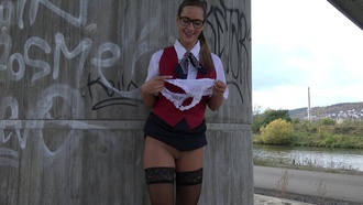 Zdravím vás, přátelé šukání za prachy. Tohle fakt musíte vidět, podařil se mi totiž neuvěřitelný kousek. Na ruzyňském letišti jsem si zahrál na řidiče Uberu. Naštěstí jsem nedostal přes držku, ale ulovil jsem nádhernou zákaznici, letušku Andreu. Po cestě jsem jí dal neslušnej návrh, měsíční plat za sex. Voňavých 30 000,- rychlých prachů za rychlý prcání. Andrea má šoustání ráda a prachy ještě víc, takže se moc dlouho nerozmýšlela. Kouřila a šukala, jako kdyby čuráka rok neviděla. Píchal jsem tu fantastickou letušku pod mostem a kolem pořád jezdili cyklisti. Natočil jsem, jak čůrá a nakonec jí nastříkal všechnu mrdku hezky do pusinky. To byla neskutečná mrdačka! Na konci se dozvíte její FB, tak ať vás ani nenapadne dělat jí nějaký oplzlý návrhy.