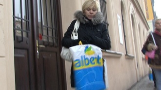 Napadlo mě, že bych mohl udělat anketu na téma „Jak stát pomáhá sociálně slabým“. Vzal jsem kameru a vyrazil před „Pracák“. Myslel jsem si, že vše půjde jako po drátkách, protože nezaměstnaným slečnám a ženám se přece prachy hodí. To byl velký omyl. Stál jsem tam od rána, v té zimě, jako pitomec a žádná se mnou nechtěla udělat ani rozhovor. Moje sebevědomí pomalu klesalo někam do sklepení a já ztrácel i tu poslední naději. Až pozdě odpoledne se na mě štěstí usmálo, protože z Úřadu práce vyšla velmi sympatická padesátiletá paní, která byla ochotná alespoň pokecat, za pětikilo. Protože byla fakt zima, pozval jsem jí dokončit rozhovor do nedaleké kavárny. Nechtělo se mi dlouho chodit kolem horké kaše a tak jsem na ní rovnou vybalil, jestli by si se mnou za šest tisíc nezapíchala. K mému velkému překvapení souhlasila, protože nutně potřebovala peníze pro svého syna. Jenže se objevil nečekaný problém a to, kam půjdeme náš oboustranně výhodný „obchod“ zrealizovat. Nakonec jsme skončili v blízkém office centru, kde jsem jí začal šukat na chodbě. Byl to však pořádný adrenalin, protože tam pořád někdo chodil. Držet kameru, hlídat jestli někdo nejde a ještě při tom šoustat, tak to byl neskutečný masakr. Nebylo to jednoduché, ale nakonec se vše povedlo natočit. Věřím, že se vám to bude líbit.